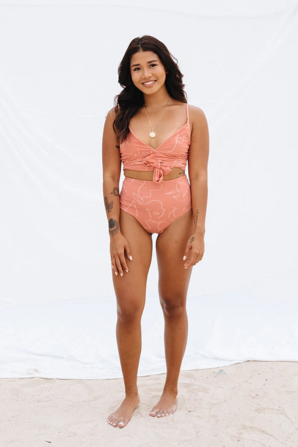 MARRAKESH HIGH WAISTED BIKINI BOTTOM CORAL PENCIL