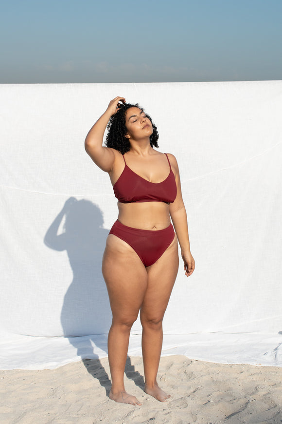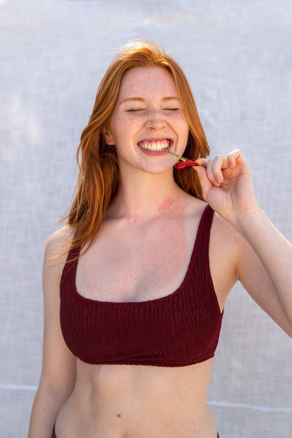 ISABEL BIKINI TOP ROUND NECK WINE RED
