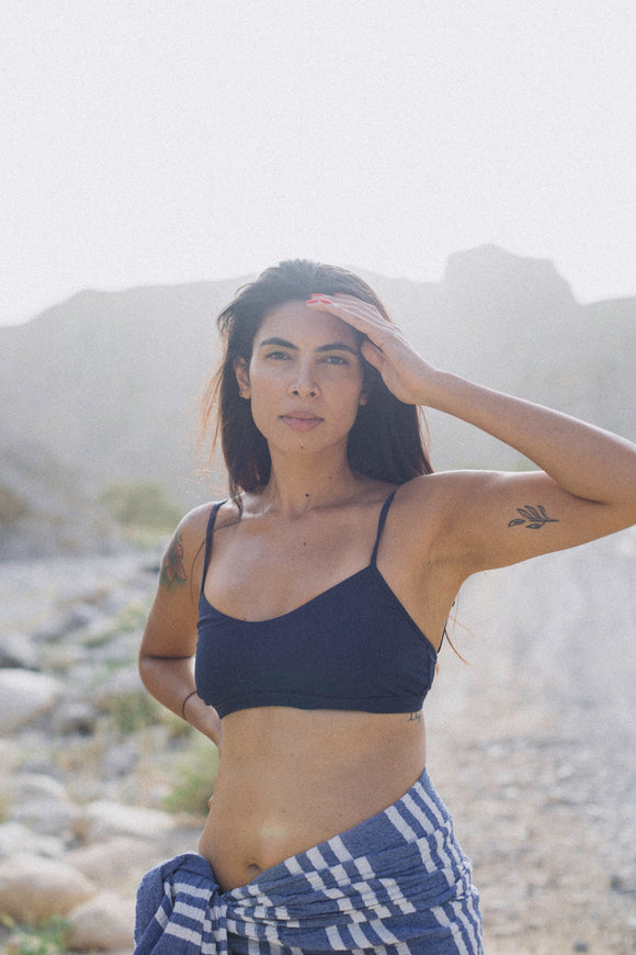 TERRY TOWEL TRIANGLE BIKINI TOP INDIGO
