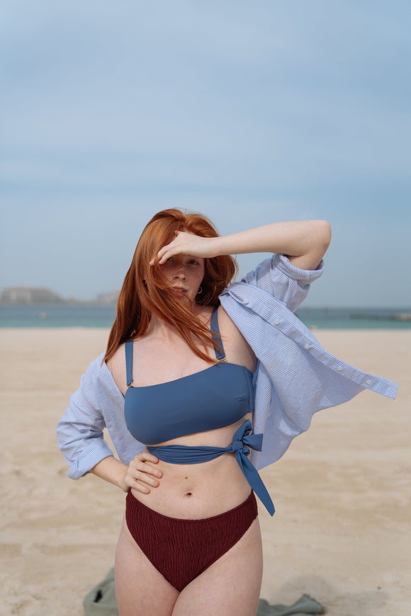 KATE BIKINI BANDEAU TOP TIE BACK HAZY BLUE